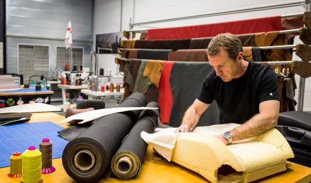 Allen elabora los patrones y busca los mejores acabados para los asientos, idénticamente a lo que haría un diseñador de alta costura. Un trabajo artesanal que sólo puede realizar un especialista de su cualificación, como él mismo explica: “Mis manos son mis ojos, tocando cada pieza puedo notar su calidad y saber cómo va a funcionar en la máquina de coser”. Su material favorito es el cuero y para coserlo utiliza cada año 30.000 metros de hilo, por ejemplo para la costura manual de cada uno de los volantes de tapiza con la ayuda de una aguja curva.