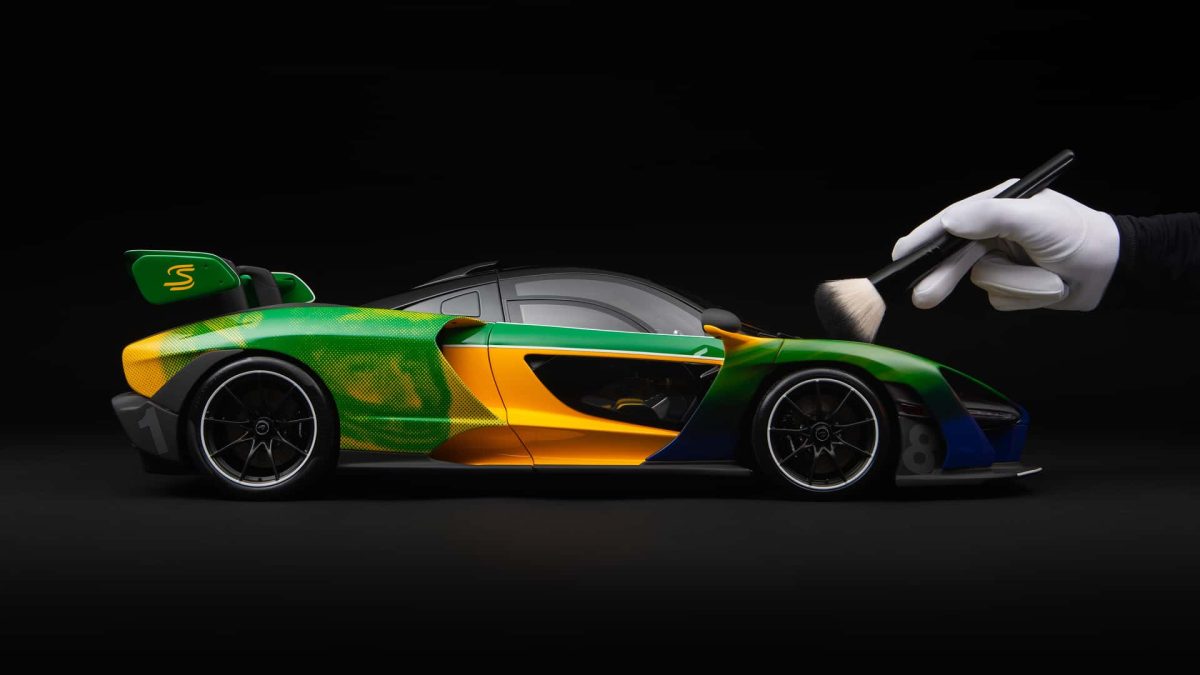 Se trata de una réplica a escala 1:8 del McLaren Senna, uno de los modelos recientes más icónicos de la marca británica. De hecho, está inspirado por el Senna presentado hace poco, que tenía una decoración especial para rendir homenaje al malogrado piloto de Fórmula 1 en el 30 aniversario de su muerte.