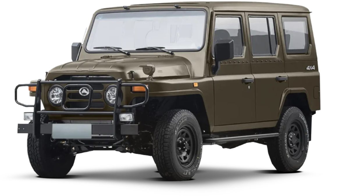 Se trata del BAW 212, un todoterreno chino que, por fuera, comparte un físico muy similar al del Defender de Land Rover. Por dentro, se puede comprar con un motor de gasolina con tracción total seleccionable. El propulsor es de Mitsubishi y entrega una potencia máxima de 211 CV, acompañado de una caja de cambios manual.
