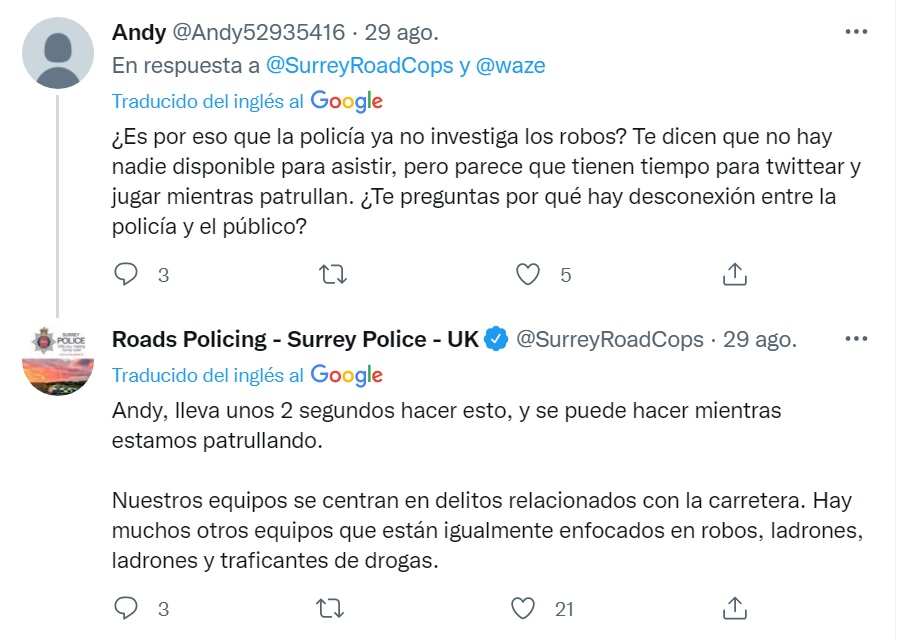 Y precisamente esto es lo que la Policía de Surrey, en Inglaterra, ha aprovechado. Han sido ellos mismos los que, a través de un tuit, publicaron irónicamente un comentario que abrió la polémica.