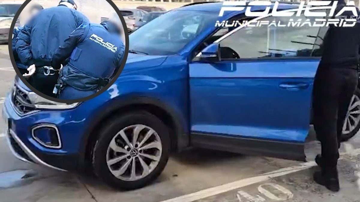 La Policía Municipal de Madrid ha publicado un post en X, en el que relata el robo de un vehículo robado y que incluía matrícula falsa. En el vídeo se muestra al autor del delito esposado y a los agentes revisando el vehículo en cuestión, un Volkswagen T-Roc.