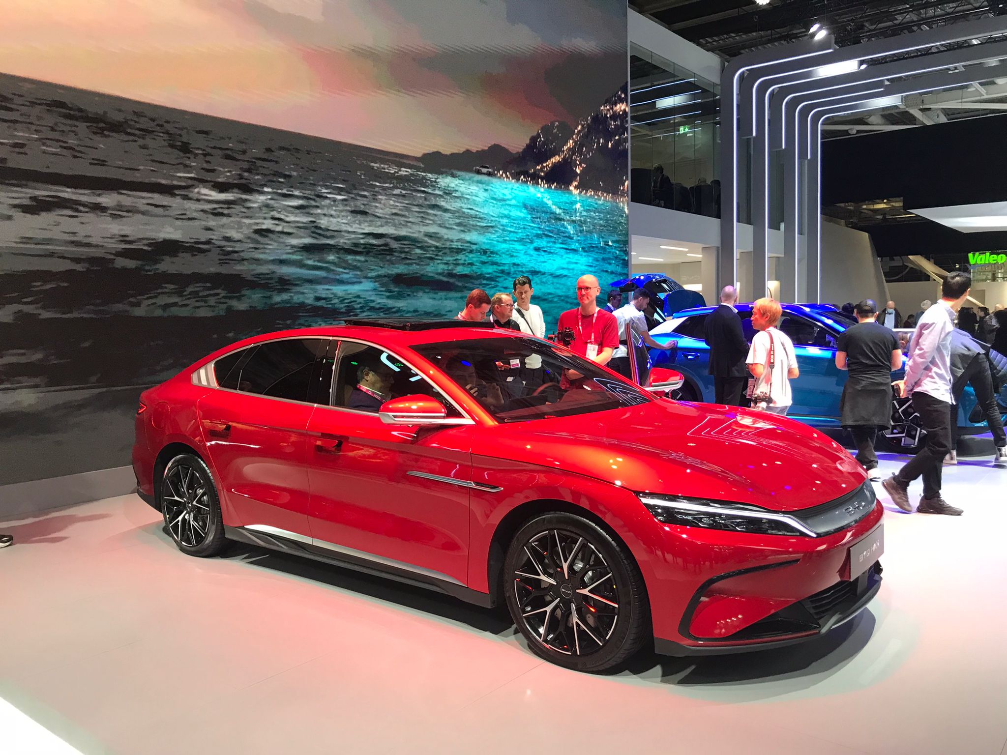 16:15. Otra muestra del protagonismo de las marcas chinas en este certamen es el BYD Han. Un novedoso producto del gigante de la automoción que apunta al segmento de las berlinas de generosas dimensiones, como demuestran sus 4,99 metros de longitud. Por supuesto es completamente eléctrica y avanza una autonomía de 517 kilómetros.