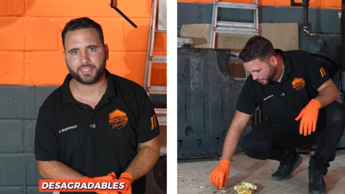“Esto es lo que no te dicen de ser mecánico. Que simplemente te manchas de grasa, pero aquí tenemos un montón de huesos de ratas, de roedores que se meten en el coche y dejan estas cositas”, señala.