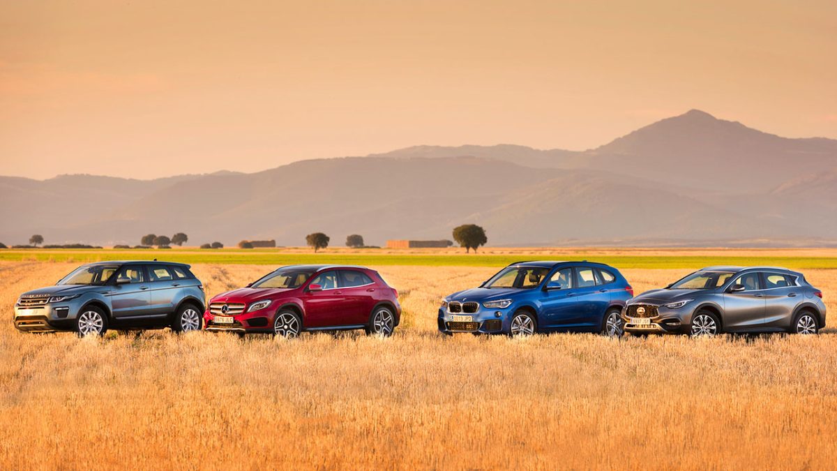Objetos de deseo. Los cuatro SUV de esta prueba ofrecen uno de los cócteles más deseados por muchos compradores europeos, aunque solo algunos se los pueden permitir. Son los BMW X1 xDrive 2.0d, Mercedes GLA 220d 4Matic, Range Rover Evoque 2.0 TD4 4×4 e Infiniti QX30 2.2DAWD. Todos reúnen carrocerías de línea todoterreno y tamaño compacto para cumplir en ciudad y carretera, y la mecánica idónea para disfrutarlas.