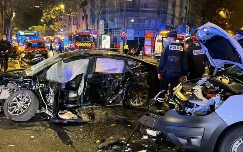 París, tarde del sábado 11 de diciembre. Un taxi Tesla Model 3 provoca un accidente, con el resultado de un fallecido y 20 heridos, tres de ellos de gravedad, como informó la agencia Reuters.