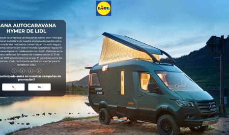 Con este texto, el siguiente sitio web ofrece un espectacular sorteo de 10 autocaravanas. Cuando se pincha en ‘participar’, también ofrece una tarjeta de regalo Lidl solo por el hecho de acceder al concurso.