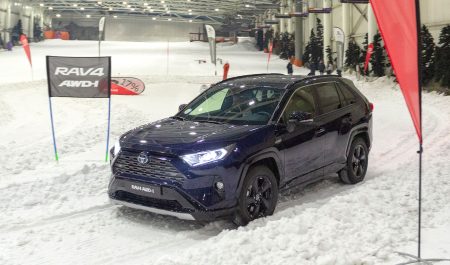 Durante la primera toma de contacto con la versión de tracción integral, el Toyota RAV4 (calzado con neumáticos «todo tiempo» Bridgestone Weather Control A005) demostró que podía evolucionar sin problemas por una pista de esquí artificial y conservar sobre nieve sus capacidades de poder ascensional y de frenado en las bajadas.