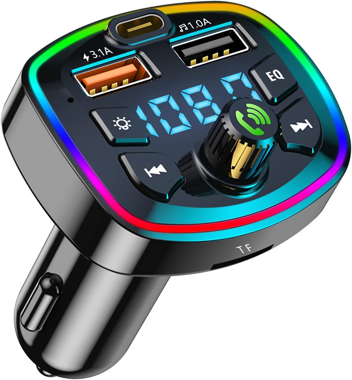 El transmisor de radio FM está equipado con retroiluminación LED de colores, que pueden lograr efectos visuales en el automóvil por la noche.