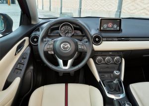 Otro aspecto significativo del Mazda 2 es su calidad mecánica y tecnológica, que busca la eficiencia con el combustible. En general, todo el coche está trabajado al detalle para afinar al máximo el peso: utiliza aceros especiales de alta resistencia en la carroceria y tanto los motores —todos de 1.5 litros con Start&stop— como los cambios, son también livianos. La gama incluye un 1.5 de gasolina con tres versiones de 75, 90 y 115 CV (desde 13.250, 15.450 y 17.800 euros). La primera (4,7 litros de consumo medio y 110 g/km de CO2) lleva cambio manual de cinco marchas y sirve solo para la ciudad; la de 90 CV (4,5 litros y 105 g/km) comparte esa caja y puede montar una automática de seis. Y la superior lleva un cambio manual de seis marchas (4,9 litros), como la versión 1.5 turbodiésel de 105 CV (16.250), que llegará en junio y será la alternativa más limpia y eficiente. Gasta solo 3,4 litros (89 g/km), va bien en todas partes, ciudad y carretera, y es uno de los pocos diésel que cumple la norma Euro 6 de emisiones sin tener que añadir un depósito AdBlue adicional.