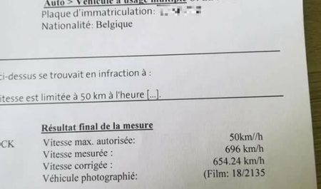 Parece una noticia falsa o una broma, y sin embargo es real. Un conductor belga ha sido cazado por el radar y multado por conducir a casi 700 km/h en una pequeña localidad del norte de Bélgica. El automovilista recibió la notificación en su casa de Hensies, ciudad fronteriza pegada a Francia, y no pudo creer lo que veía en el boletín de denuncia.