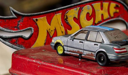 Se trata de un automóvil que no es reflejo de ningún modelo real, si no que está inspirado por los coches japoneses de los años 90 que llegaron al mercado estadounidense, caracterizados por su fiabilidad y que todavía es fácil ver circulando por las calles, aunque, por supuesto, cargados de parches y remiendos, algo que refleja claramente el automóvil a escala.