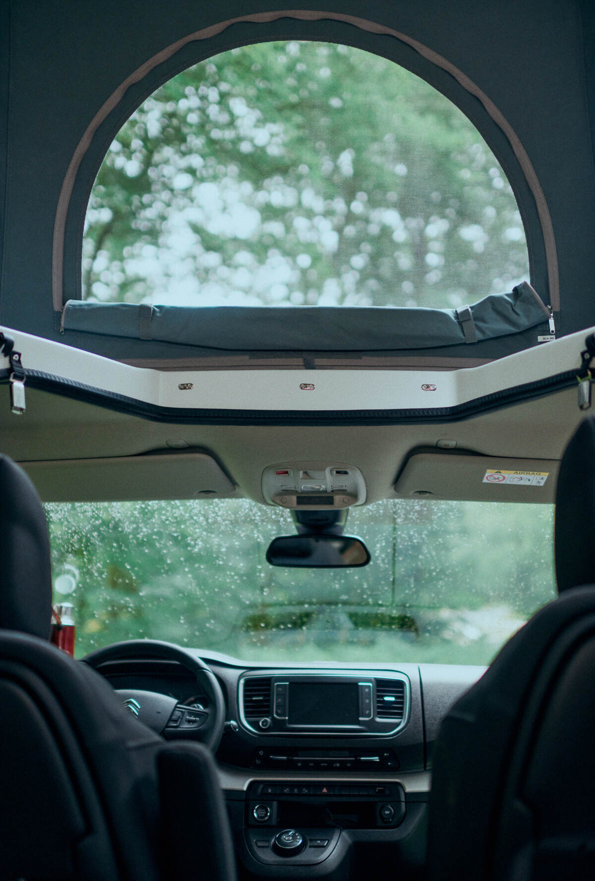 - Techo desplegable con altura suficiente para permanecer de pie y con cama para dos personas.