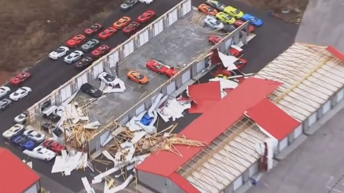 La planta de ensamblaje de GM en Bowling Green, Kentucky, quedó parcialmente arrasada, y con ella hasta 120 unidades del icónico Corvette, uno de los deportivos estadounidenses más populares.