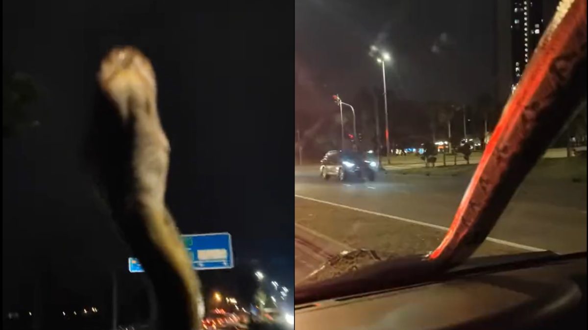El viral (en ‘X’, antes Twitter) tiene más de 220.000 reproducciones y dura casi tres minutos. Según señalan medios locales, en el vídeo la mujer que estaba al interior del coche aconsejaba conducir más lento para no dañar a la serpiente. Por suerte, todo quedó en un susto y el animal fue rescatado por bomberos.