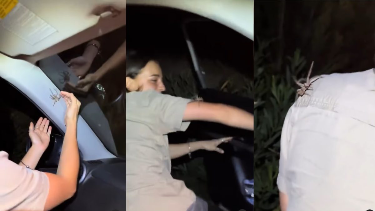 Tal como lo muestra el vídeo, con el coche detenido, la joven conductora consigue atrapar con delicadeza al insecto, para luego bajarse con ella. La escurridiza araña recorre su espalda para luego saltar y escapar.