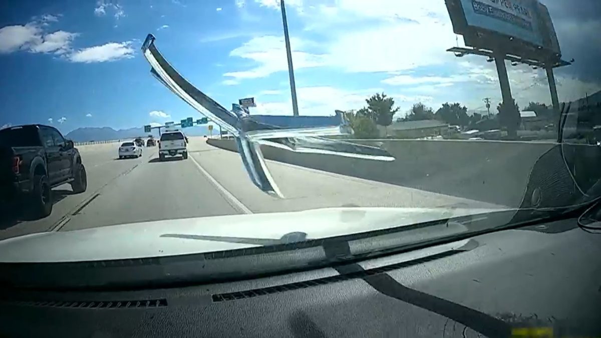 “Era la base de una silla de oficina, sólo las partes metálicas. No tenía ninguna de las ruedas. Otro automóvil chocó contra la pieza y escupió debajo de su llanta, pasó por encima del auto que estaba a nuestro lado y cayó sobre nuestro parabrisas”, dijo a los medios estadounidenses Lily Eaton, que viajaba en el coche.