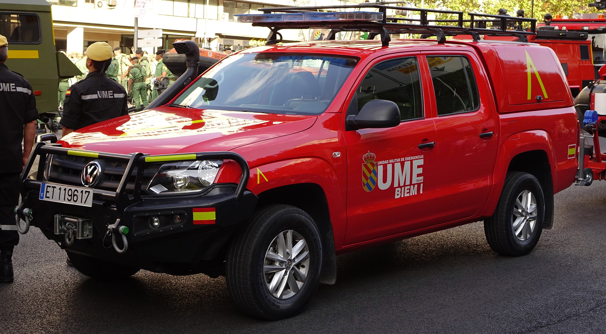 Los vehículos pesados de origen militar son adecuados para moverse por zonas devastadas o en condiciones extremas, pero no resultan prácticos en entornos urbanos ni son rápidos. Por esa razón la UME se ha hecho con 252 unidades del Volkswagen Amarok para labores multifunción. La suya es la versión con motor 2.0 TSI biturbo de 180 CV, una velocidad máxima de 179 km/h, tracción integral permanente a las cuatro ruedas y caja de cambios automática con reductoras. Pueden vadear cursos de agua de hasta 50 centímetros de profundidad y transportar 1.000 kilos de carga.