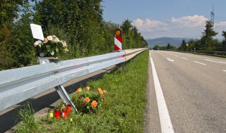 Flores en la carretera en recuerdo de una víctima de un siniestro vial.
