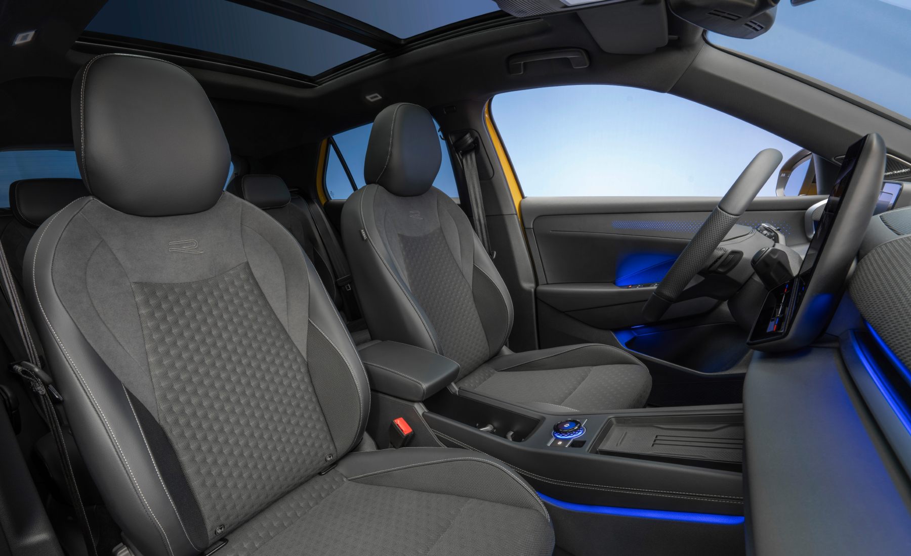 El habitáculo ha sido completamente renovado. Materiales como la tela estructurada (aquella que, por su diseño o construcción, mantiene una forma definida y a menudo rígida), cuero sintético y plásticos blandos elevan la calidad a un nuevo nivel. El nuevo Digital Cockpit Pro, el Head-up Display y el sistema de infoentretenimiento con asistente de voz y ChatGPT integrado sitúan al T-Roc a la altura de modelos de segmentos superiores como el Tiguan o el Tayron.