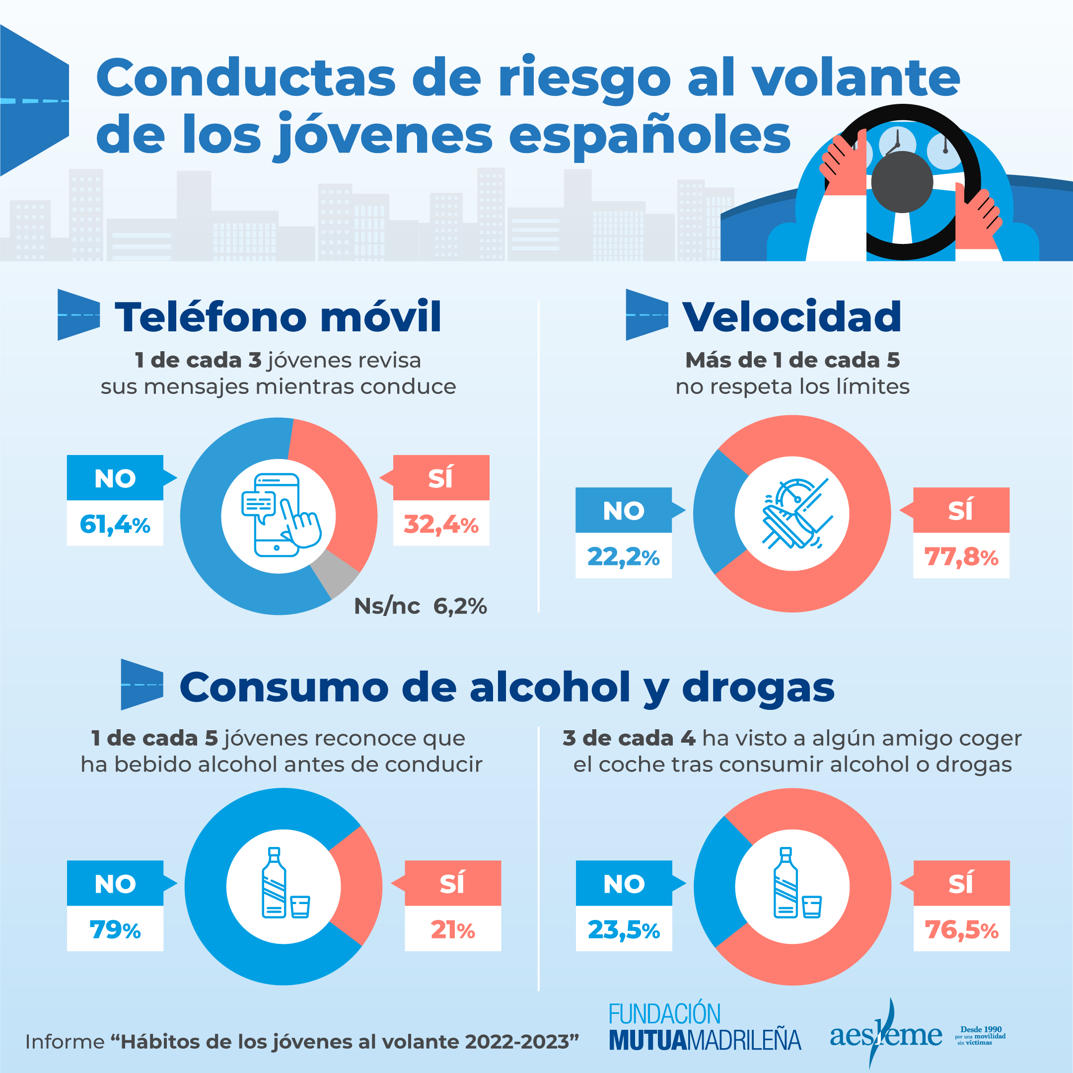 Sus autores sospechan que los jóvenes se muestran más remisos a revelar imprudencias propias. Aun así, uno de cada cinco (21%) confiesa que ha bebido alcohol antes de conducir. Un porcentaje similar (22,2%) reconoce abiertamente no respetar los límites de velocidad.