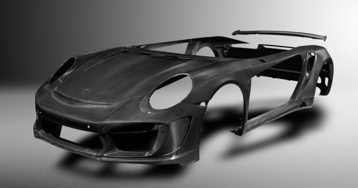 Eso es lo que ha hecho el preparador ruso Topcar con el Porsche 911 (concretamente el 991 Turbo / Turbo S). Denominado Stinger GTR, el proyecto está formado por 30 piezas hechas de fibra, que van desde el frontal al capó, pasando por los pasos de rueda, el difusor y el alerón. Solo techo y puertas siguen siendo las originales.