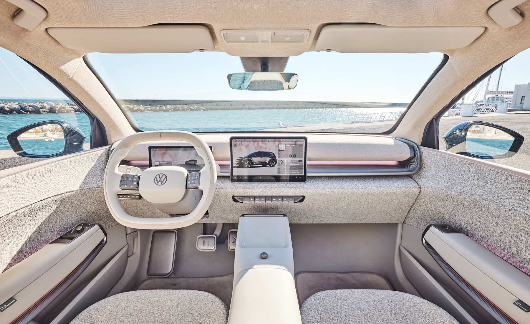 Por dentro, el ID. Cross Concept apuesta por el confort y la sostenibilidad. El habitáculo, con tonos cálidos como el Vanilla Chai y tejidos bouclé (pequeñas lazadas o bucles, que le dan una textura suave y ligeramente irregular), transmite sensación de bienestar. Además, incorpora detalles únicos: plantas reales en la consola central y lo que la marca ha llamado Atmospheres, un conjunto de modos preconfigurados que inciden sobre la luz ambiental, el sonido y la climatización para crear un ambiente muy relajante dentro del habitáculo.