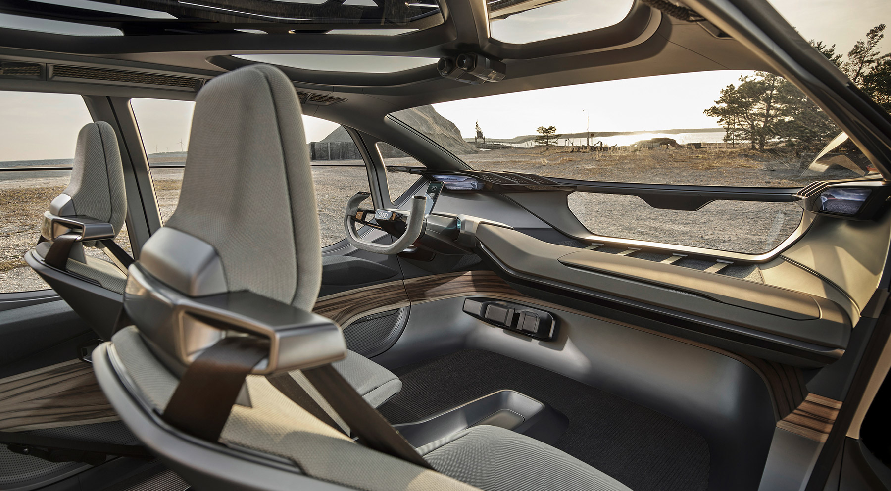 Para facilitar el control de las dimensiones del coche y potenciar la visibilidad en la conducción 4×4, un aspecto vital para saber dónde está cada rueda en cada momento, el Audi AI:Trail cuenta con gran superficie acristalada. Pero no es el único desarrollo enfocado a este uso, porque los neumáticos pueden inflarse y desinflarse desde el interior, para mejorar la tracción sobre arena, por ejemplo.