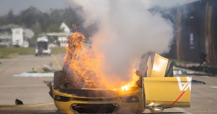 Para ejemplificarlo, llevó a cabo una demostración que no tardó en hacerse viral. En ella, se lanzó un Tesla por una rampa para que volcase y, tras pasar unos cuantos segundos, comenzó un fuego en sus bajos.