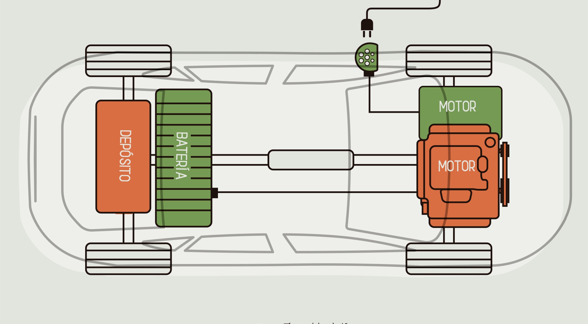 • Un motor y medio. El térmico sigue siendo el principal, pero el eléctrico crece en tamaño y potencia.