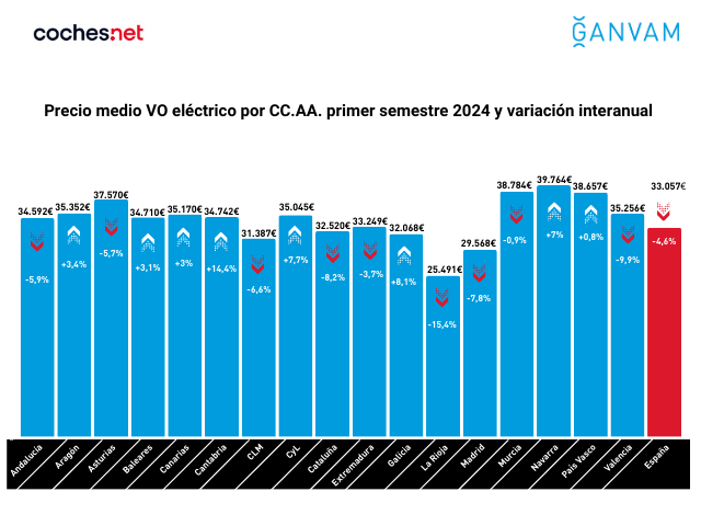 Según los datos de Ganvam y coches.net, referentes al primer trimestre del año, las ventas de coches eléctricos de segunda mano han crecido un 60% en comparación con el mismo periodo del 2023. El informe argumenta que la principal razón de este crecimiento es la bajada del precio medio del eléctrico de ocasión.