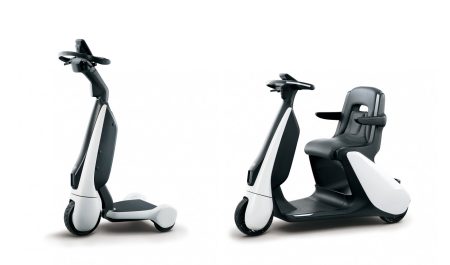 El Toyota C+walkT es un dispositivo de tres ruedas que por lo general se utiliza de pie, aunque es posible acoplarle una silla en la zona trasera. Ocupa más o menos lo mismo que una persona: 70 centímetros de largo y 45 de ancho, con una altura de solo 15 centímetros en su plataforma para que sea más fácil subir.