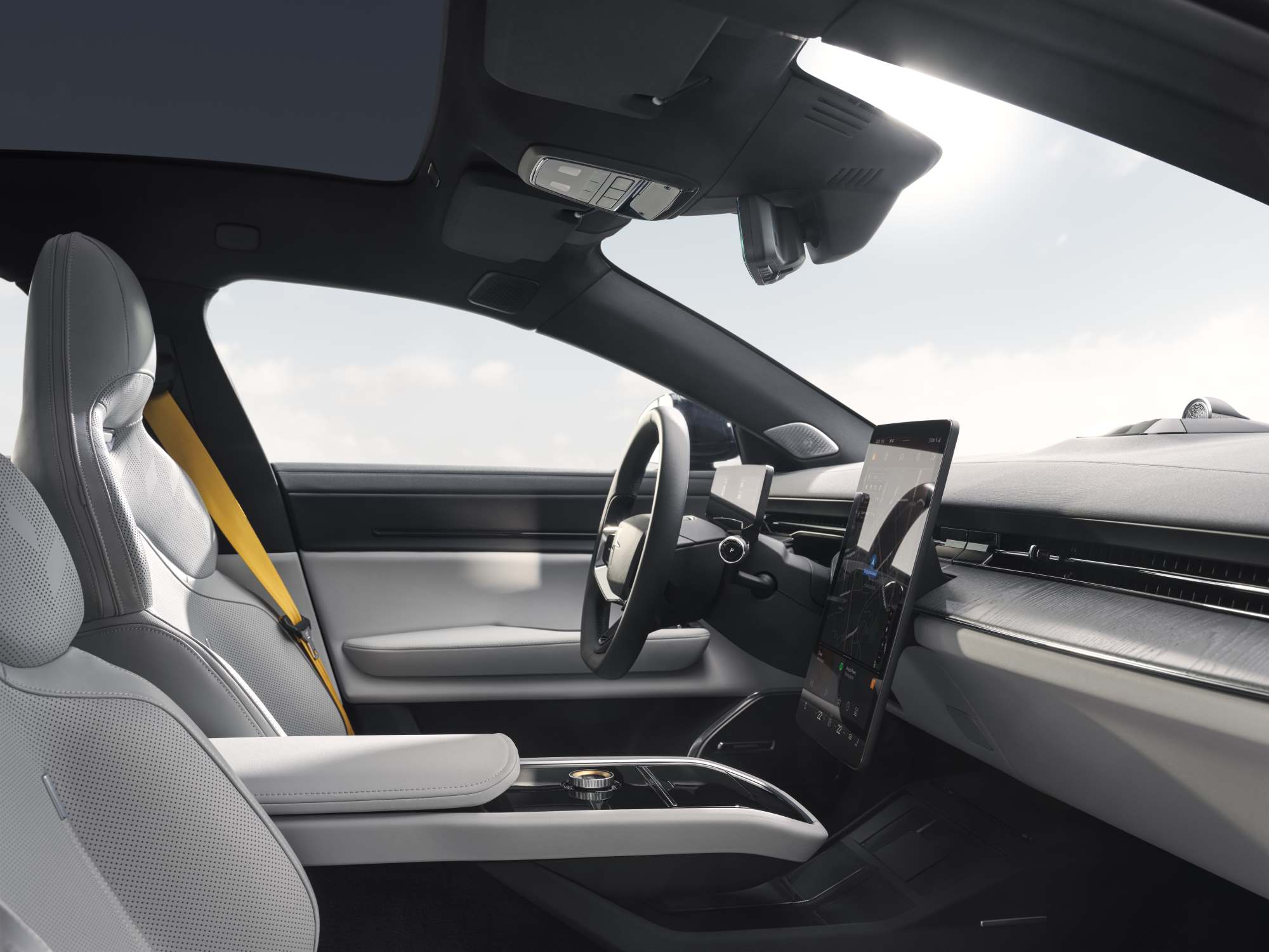 La habitabilidad trasera se ha optimizado desplazando la estructura superior hacia atrás y utilizando un retrovisor digital, como en el Polestar 4. El techo panorámico de más de dos metros de largo y 1,25 metros de ancho refuerza la sensación de a mplitud y luminosidad en el interior.