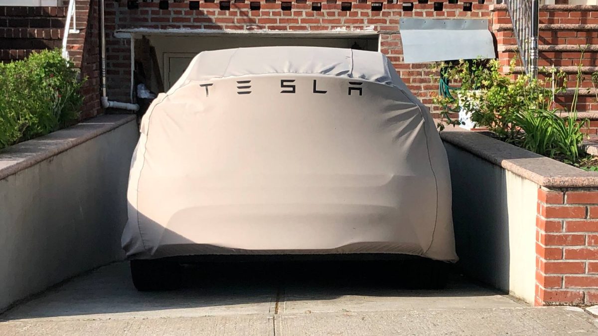 Un Tesla haciendo el ridículo: se atasca en el cemento y el trabajador sólo mira y graba