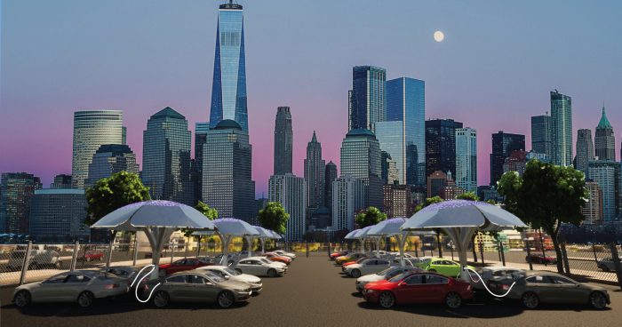 Es posible emplear el Energy Tree como poste de recarga rápida para vehículos eléctricos, y la empresa imagina estaciones de carga con múltiples árboles que formarían bosques solares donde recargar coches, motos o cualquier vehículo electrificado.