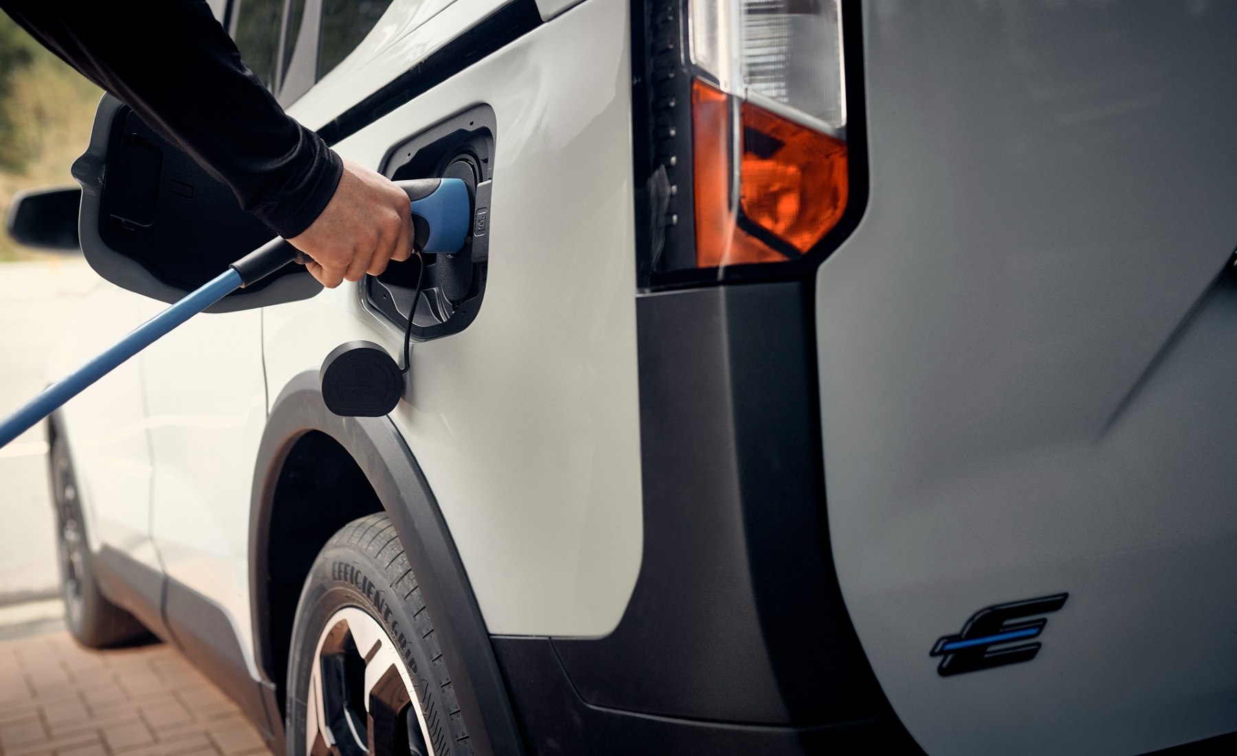 A ello se suma una generosa distancia entre ejes de 2,70 metros, lo que permite maximizar el espacio interior sin comprometer su maniobrabilidad en ciudad. La parrilla delantera específica para la versión eléctrica y la barra de luces que conecta los faros confieren al modelo un aire tecnológico y actual. Las dos puertas correderas son perfectas para acceder a los asientos traseros de manera cómoda y fácil.