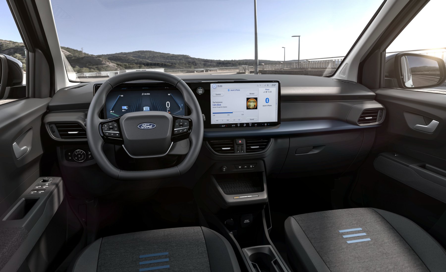 La Ford E-Tourneo Courier es más que una simple furgoneta eléctrica. Con su estética robusta, inspirada en los SUV, y una carrocería práctica de cinco puertas, ofrece soluciones de movilidad para familias, profesionales o aventureros del día a día. En el interior, sorprende con un habitáculo amplio y modulable, un maletero que llega hasta los 2.162 litros y tecnología de última generación: instrumentación digital de 12 pulgadas y pantalla de infoentretenimiento táctil —también de 12 pulgadas— con SYNC 4 y conectividad inalámbrica de serie.