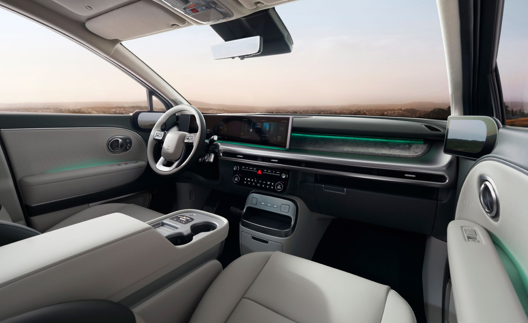 Al abrir la puerta del conductor, lo primero que llama la atención son las pantallas OLED de siete pulgadas que proyecta las imágenes de las cámaras que sustituyen a los retrovisores. En el salpicadero, dos pantallas de 12,3 pulgadas curvadas hacia el conductor ofrecen una experiencia digital envolvente y moderna. Por su parte, la experiencia del usuario al conducir el nuevo Ioniq 9 es tan exclusiva como satisfactoria.