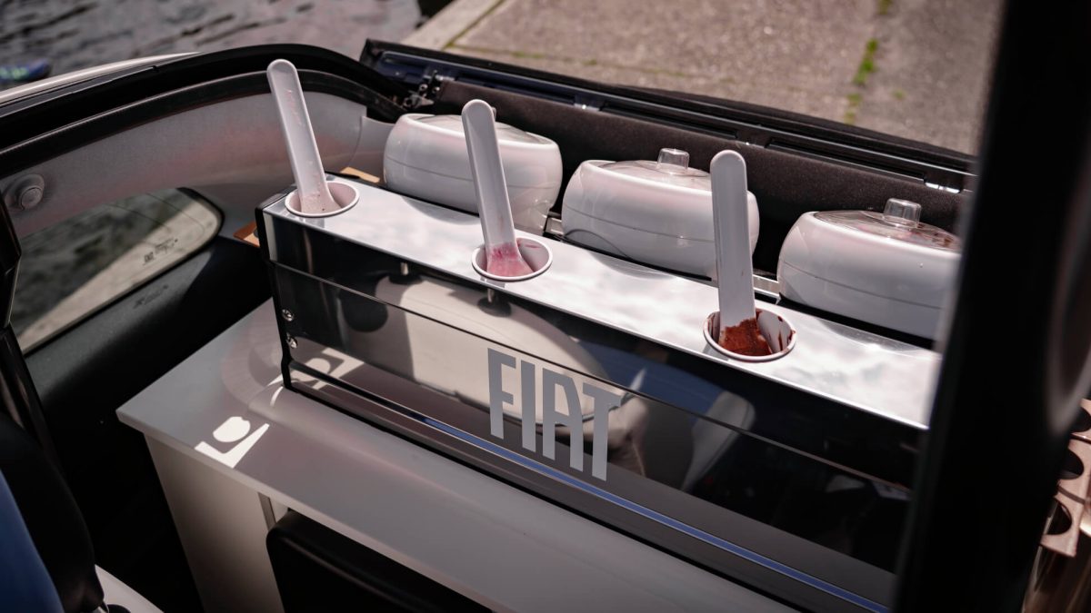 Tanto es así que Fiat lo ha definido como “la heladería más pequeña del mundo”. A pesar de su tamaño, es capaz de atender a unas 300 personas al día que podrán pedir un cono o una tarrina del sabor que ha creado la marca para la ocasión. El nuevo helado está inspirado en el bicerin, una bebida caliente tradicional de Turín. Sabe a café y chocolate.