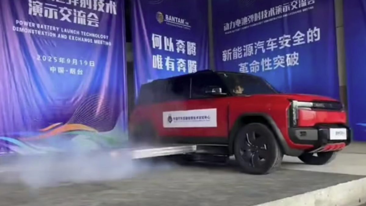 Los incendios de los coches eléctricos han sido uno de los grandes protagonistas de 2025. No son muy habituales, pero cuando se producen, las reacciones químicas que tienen lugar en su interior hacen que sean muy complicados de apagar. Esto ha hecho que se busquen soluciones, algunas más eficientes que otras, pero ninguna tan espectacular como la que llega de China: eyectar la batería fuera del coche.