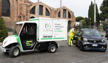 Se trata de un servicio de recarga móvil bajo demanda, que está cubierto en el caso milanés por diez furgonetas que operan en el centro urbano de la ciudad. Los vehículos utilizados por E-Gap son también de mecánica a pilas sin emisiones y alojan en su interior un cargador portátil.