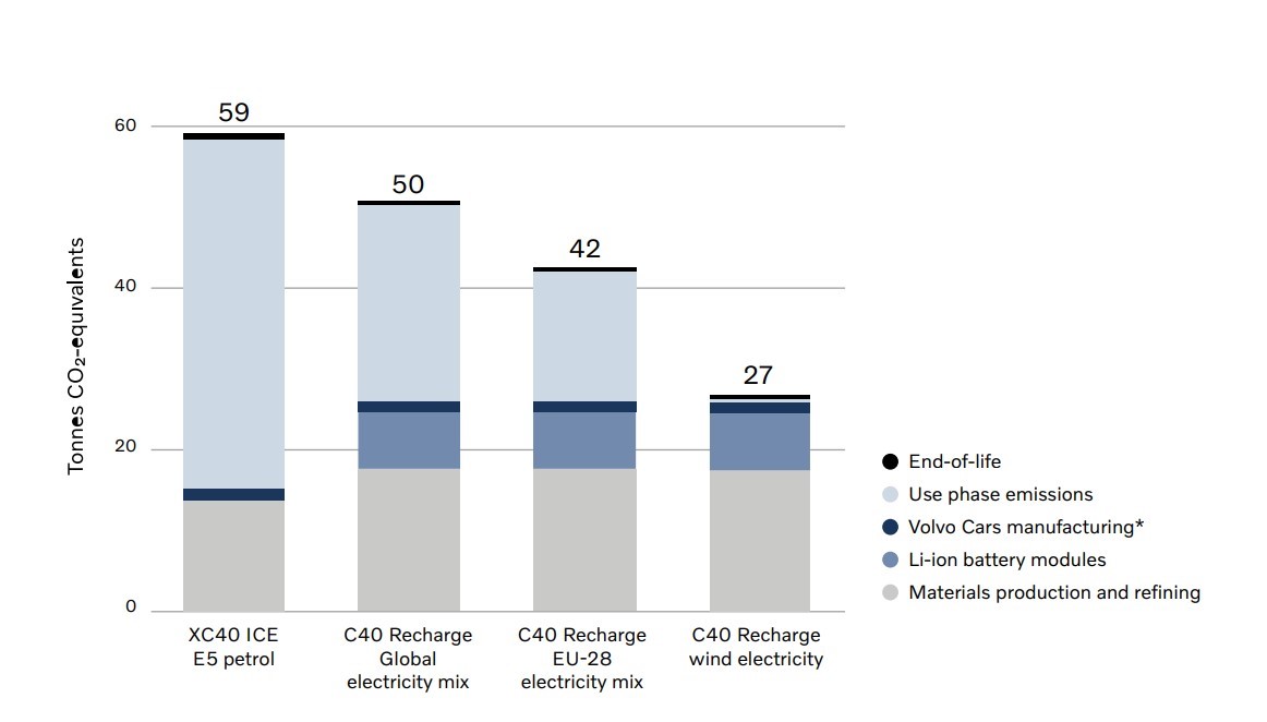 La marca sueca presenta otro estudio similar, que compara un XC40 eléctrico con el mismo modelo de gasolina. Y los resultados son similares.