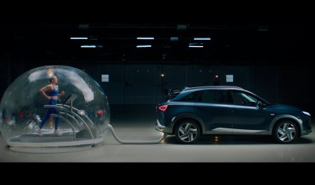 En las imágenes aparece la nadadora Mireia Belmonte preparada para entrenarse. Nada raro. La campeona olímpica corre sobre una cinta, nada extraño. Pero todo depende de la perspectiva: la cámara se aleja y entonces puede apreciarse que la deportista, embajadora de Hyundai, está dentro de una burbuja. Y más extraño aún: el inesperado habitáculo está conectado al tubo de escape de un Hyundai Nexo. Belmonte está respirando directamente las emisiones del todocamino coreano, el primer coche movido por hidrógeno matriculado en España.
