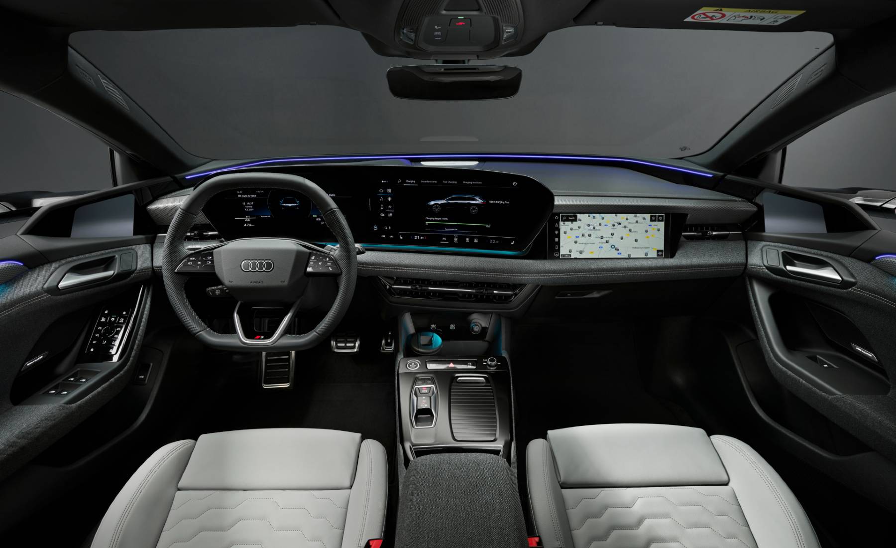 El sistema de infoentretenimiento incluye el Audi MMI Panoramic Display, con una pantalla curvada OLED que integra cuadro de mandos virtual de 30,2 centímetros y la pantalla central de 36,8 centímetros. Además, está disponible un tercer monitor para el copiloto de 27,7 centímetros. Esta permite disfrutar de contenidos multimedia sin distraer al conductor. Además, el head-up display con realidad aumentada opcional muestra información relevante directamente en el parabrisas, mejorando la experiencia de conducción.