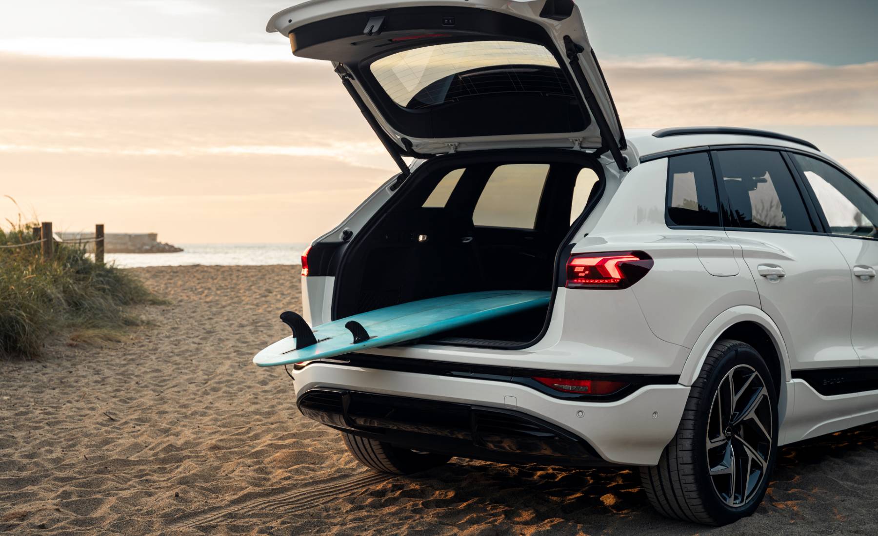 Aunque se trata de un modelo que va a marcar la próxima generación de diseño de la compañía de los cuatro aros, el SUV grita Audi por los cuatro costados. Se trata de una evolución del diseño del Q8 e-tron. Sus cotas son de 4,77 metros de largo, 1,93 de ancho y 1,64 de altura. La distancia entre ejes es 2,89 metros. Por su parte, el espacio de carga ofrece dos áreas bien diferenciadas: maletero con 526 litros y un portaequipajes más pequeño en la parte delantera de 64 litros.