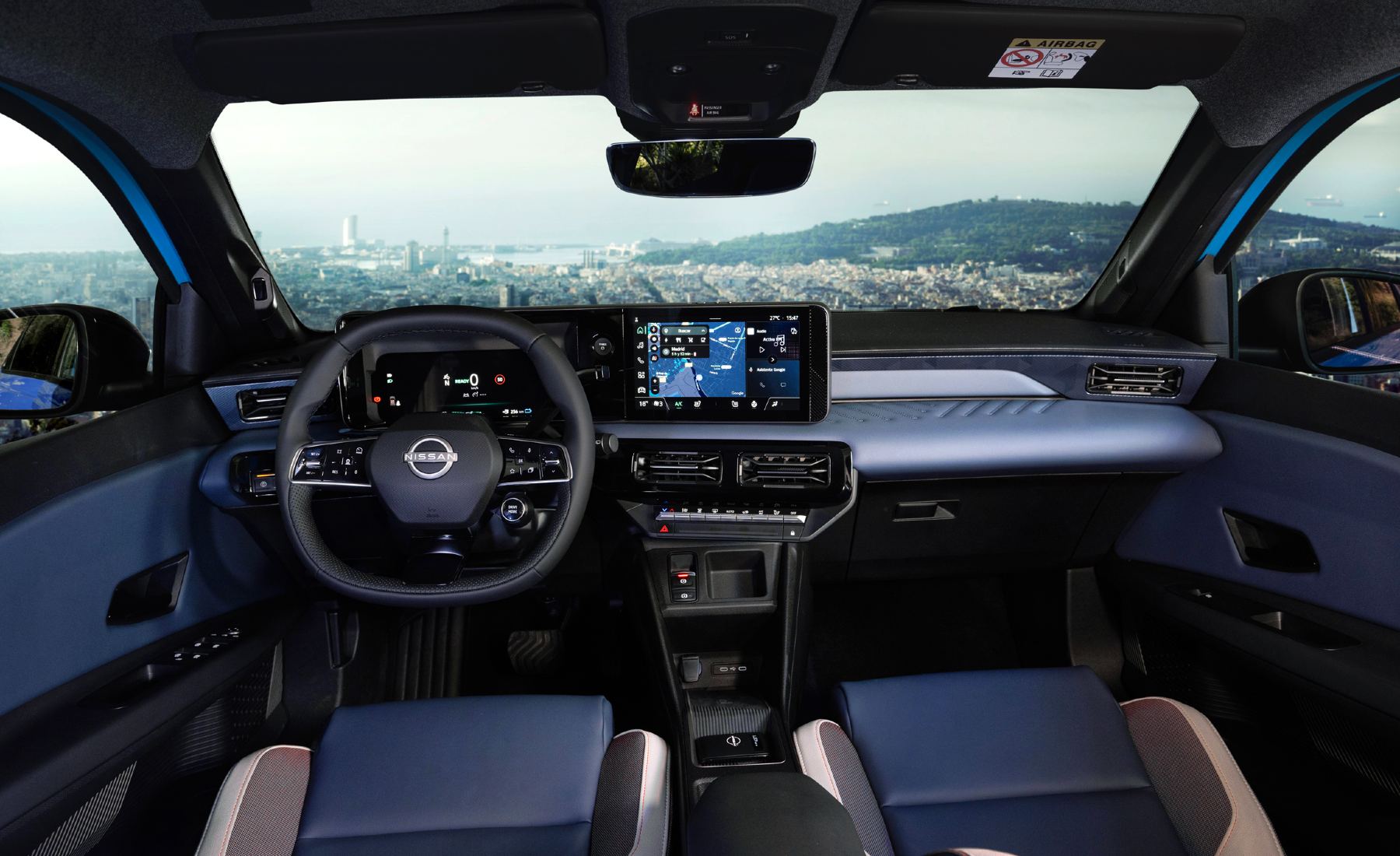 La conectividad es total gracias al sistema NissanConnect con Google integrado, que incluye Google Maps de serie. Este sistema no solo guía al conductor, sino que también planifica rutas teniendo en cuenta la autonomía, estaciones de carga y condiciones del vehículo.