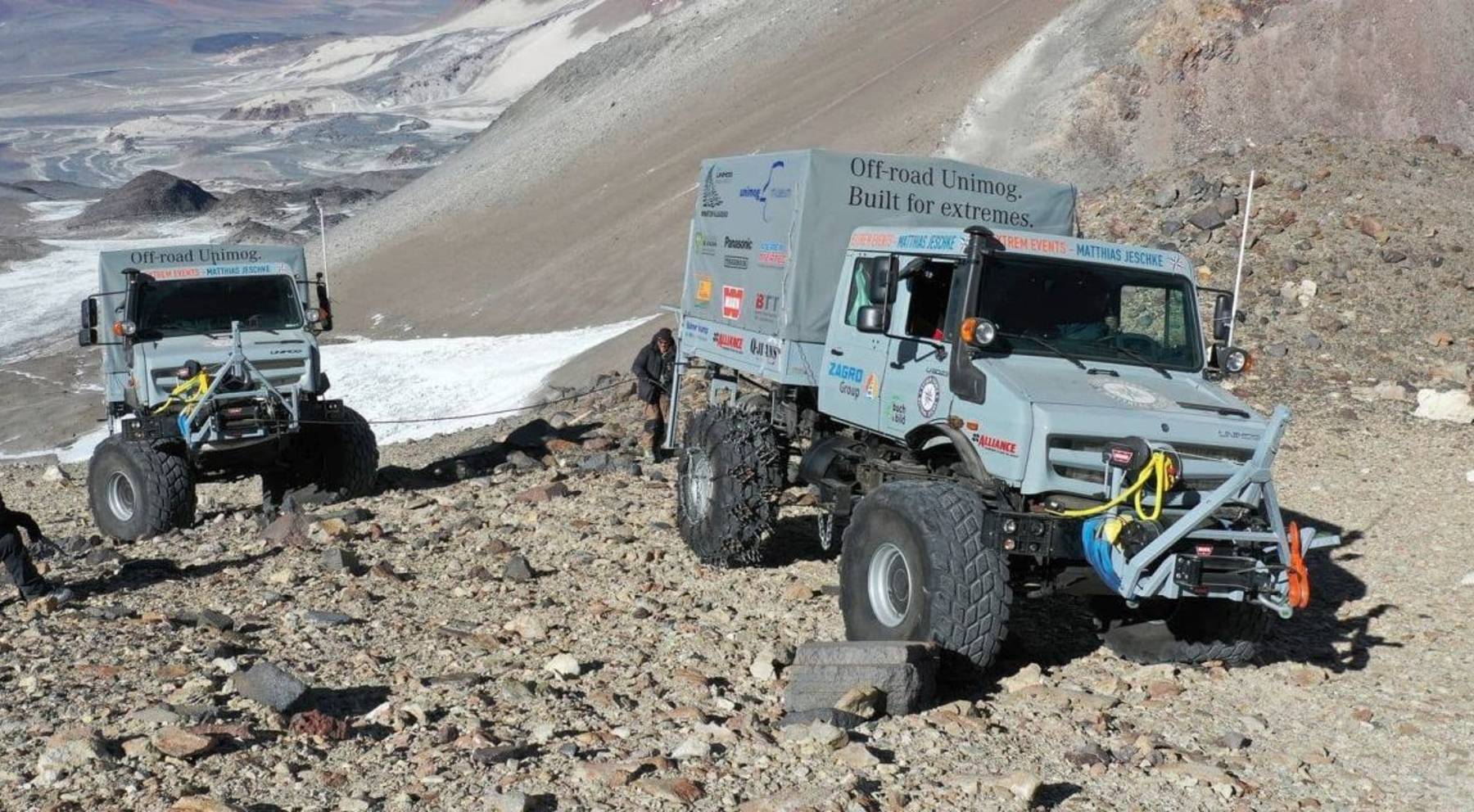 En la actualidad, la plusmarca la ostentan sendos Mercedes Unimog, que consiguieron alzarse hasta los 6.694 metros en el volcán Ojos del Salado. La división Mercedes-Benz Special Trucks preparó dos unidades de 231 CV y 900 Nm de par motor (a 1.400 rpm) para la instalación de antenas de radio de emergencias.