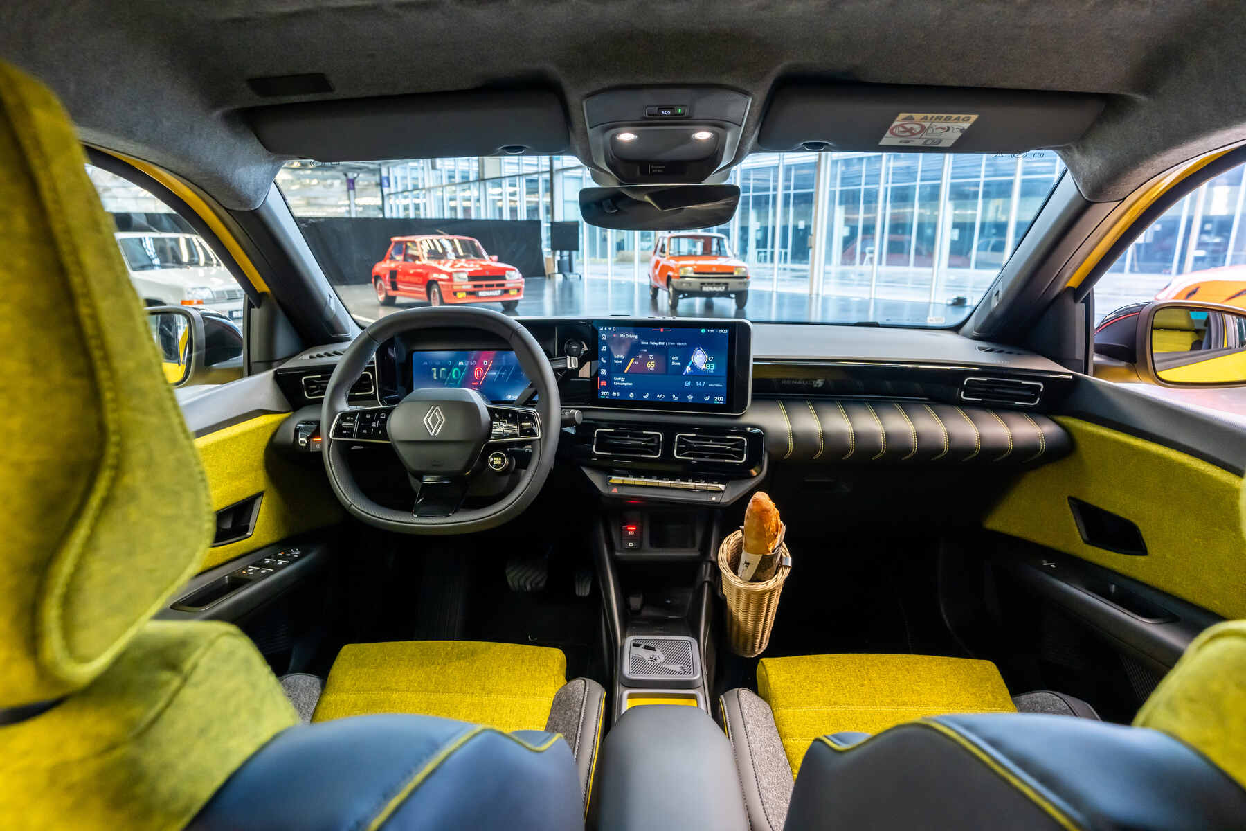 El nuevo Renault 5 se ha producido con la idea de que sea tan divertido de conducir como de mirar. Las carrocerías estarán disponibles en varios colores ‘pop’, como el amarillo o el verde, además del blanco, el negro y el azul marino; y la tela de los asientos podrá escogerse en muy distintas combinaciones. A destacar: el conjunto de tela vaquera, fabricada a partir de botellas de plástico recicladas, con antelina marrón.