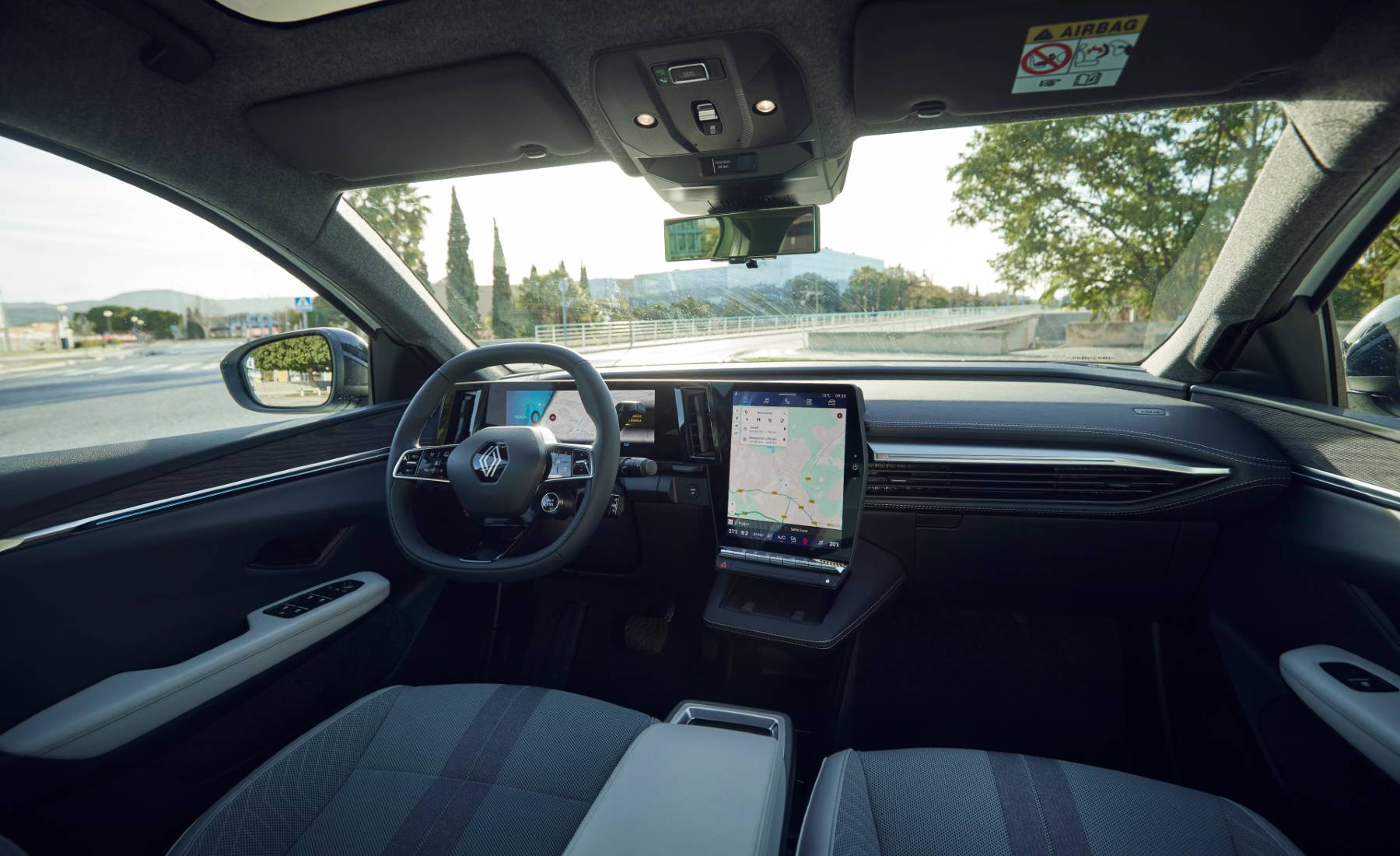 La marca gala dispuso diferentes recorridos para realizar una primera toma de contacto con el nuevo Scenic E-Tech 100% eléctrico. La ruta incluyó diferentes escenarios como zonas urbanas, carreteras secundarias, puertos de montaña y autovía. Nada más acceder al coche y sentarse tras el volante, se descubre un puesto de conducción muy cómodo. Solo dispone de los botones físicos imprescindibles; como en la gran mayoría de los automóviles actuales, ya que, muchas de las operaciones, se realizan a través de la pantalla central.