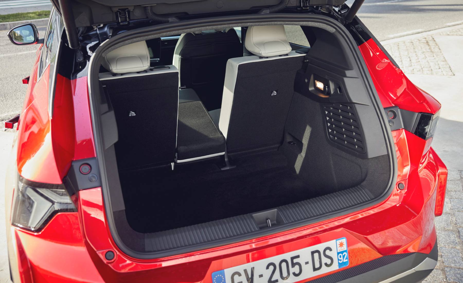 Aunque sus cotas son algo más pequeñas que las de otros vehículos de la competencia en el segmento C, el Renault Scenic E-Tech sigue ofreciendo un buen espacio interior gracias a la adopción de la plataforma eléctrica AmpR Medium (compartida con el Renault Megane y el Nissan Ariya) y a su piso plano. Los ocupantes traseros se benefician del gran espacio del habitáculo y disponen de un espacio para las rodillas bastante generoso, con 278 milímetros. Asimismo, la capacidad de carga ofrece huecos con un volumen total de 38,7 litros.