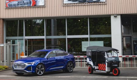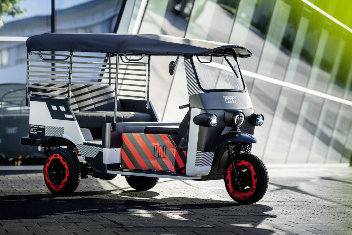 Entre las diversas actividades de la AEF, en India destaca especialmente un proyecto desarrollado por los alumnos becarios de la fábrica. Partiendo de un triciclo rickshaw de 1979, vehículos muy populares en los países asiáticos, los jóvenes estudiantes de ingeniería han electrificado su mecánica original, dotándole de baterías recicladas del Audi e-tron.
